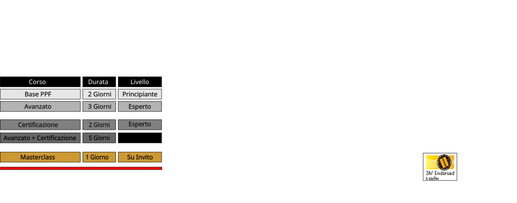 Come 3M PPF Training Center, offriamo corsi di formazione ufficiali per applicatori professionisti, carrozzieri e detailer che desiderano: